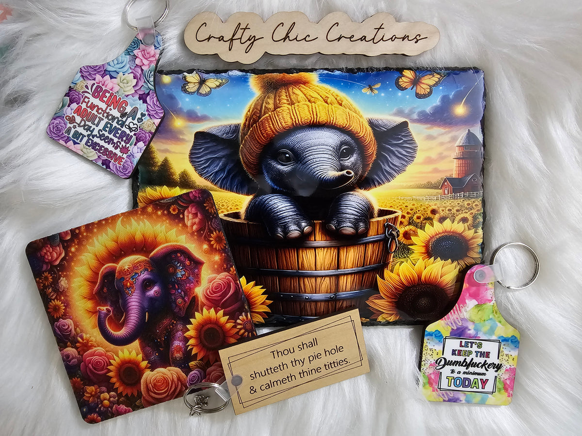 Laser engraved items, sublimation items including blanks, car diffusers, beard oil, vinyl decals
